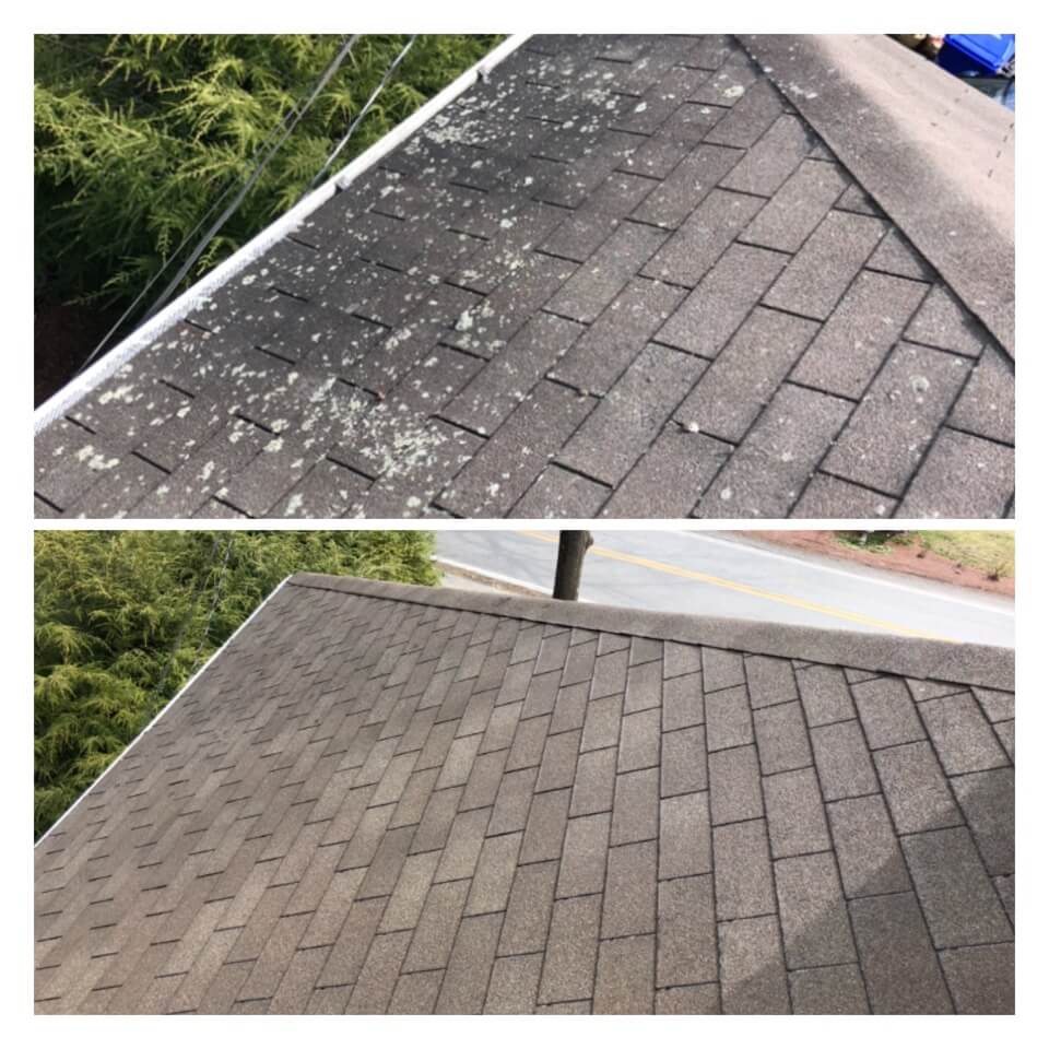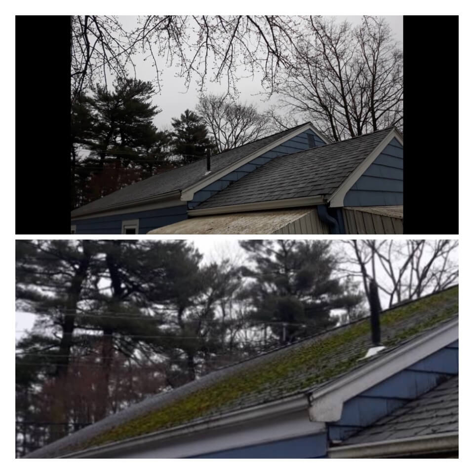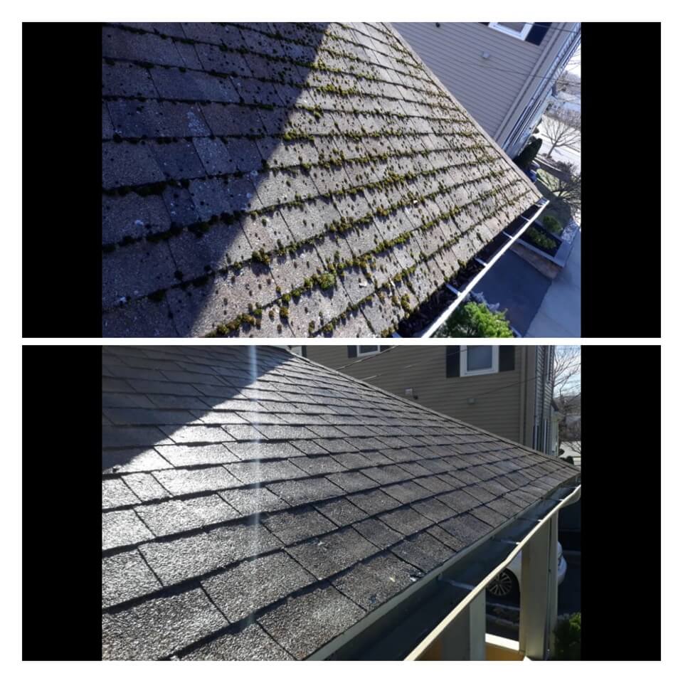 HiCleaners is the most experienced company in Salem, NH that deals with roof washing and roof soft washing. All of our employees are trained to recognize precise solution mixing ratios to provide you with the safest and most effective soft washing service. Roofs are a commonly neglected part of a house due to the fact that most people don’t have ladders to access it, so it is very easy to just leave it alone and forget about problems that may start to arise. Just like many home owners, discoloration and small bits of moss on a roof can be overlooked because of the misconception that it is just aesthetic. However, it isn’t just aesthetic, the moss slowly lifts the granules off the shingles which in turn shorten the life of the shingle. The moss also spreads, just like any bacteria if it is left alone for too long, it can quickly become a problem that spirals out of control. Call HiCleaners for a free quote, we only use the most advanced eco-friendly solutions and equipment to make sure the job is done right, for the safety of the employees, your plants, grass, pets, and children.