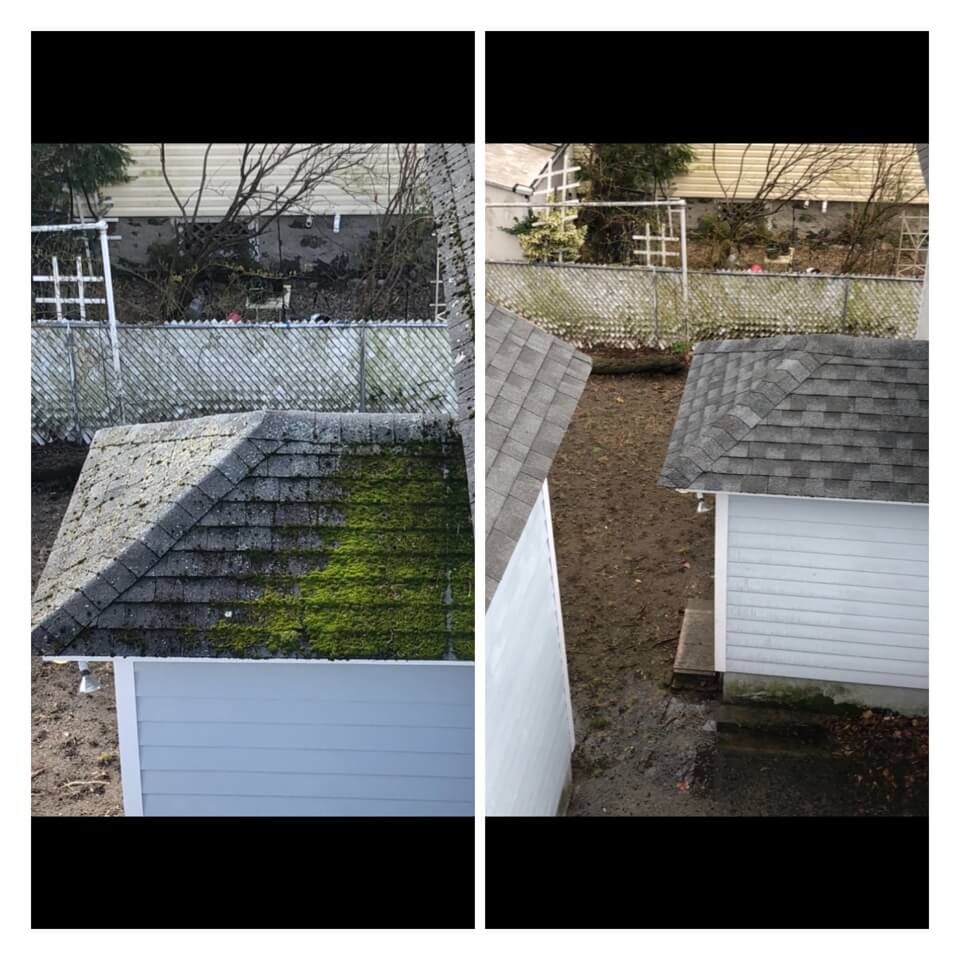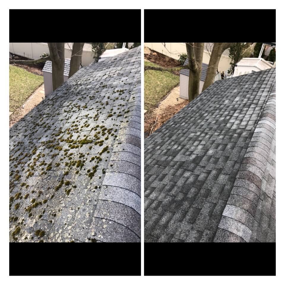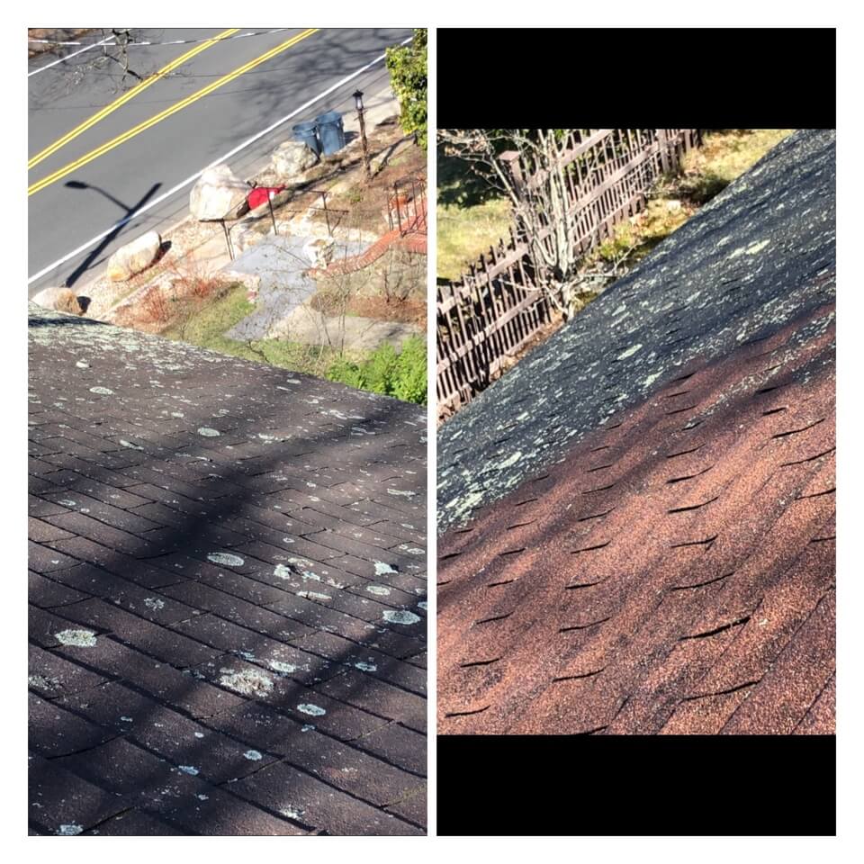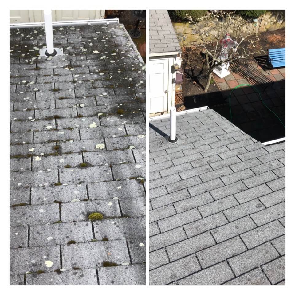 HiCleaners is the most experienced company in Salem, NH that deals with roof washing and roof soft washing. All of our employees are trained to recognize precise solution mixing ratios to provide you with the safest and most effective soft washing service. Roofs are a commonly neglected part of a house due to the fact that most people don’t have ladders to access it, so it is very easy to just leave it alone and forget about problems that may start to arise. Just like many home owners, discoloration and small bits of moss on a roof can be overlooked because of the misconception that it is just aesthetic. However, it isn’t just aesthetic, the moss slowly lifts the granules off the shingles which in turn shorten the life of the shingle. The moss also spreads, just like any bacteria if it is left alone for too long, it can quickly become a problem that spirals out of control. Call HiCleaners for a free quote, we only use the most advanced eco-friendly solutions and equipment to make sure the job is done right, for the safety of the employees, your plants, grass, pets, and children.